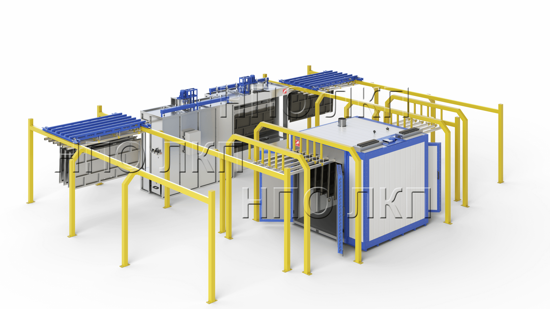 Типовой участок предназначен для нанесения и полимеризации порошкового покрытия на изделиях небольших габаритов.