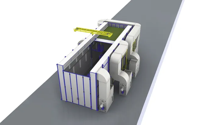 Поворотно-окрасочные конструкции получили широкое распространение благодаря тому, что прикрепленную деталь можно поворачивать на 180° и 360°. В определенной позиции изделие удерживается стопором, который приводится в действие с помощью нажатия педали. Рама расположена на колесах, что значительно облегчает передвижение оборудования вместе с деталью. Кроме того, предусмотрено специально отведенное место для краскораспылителя.