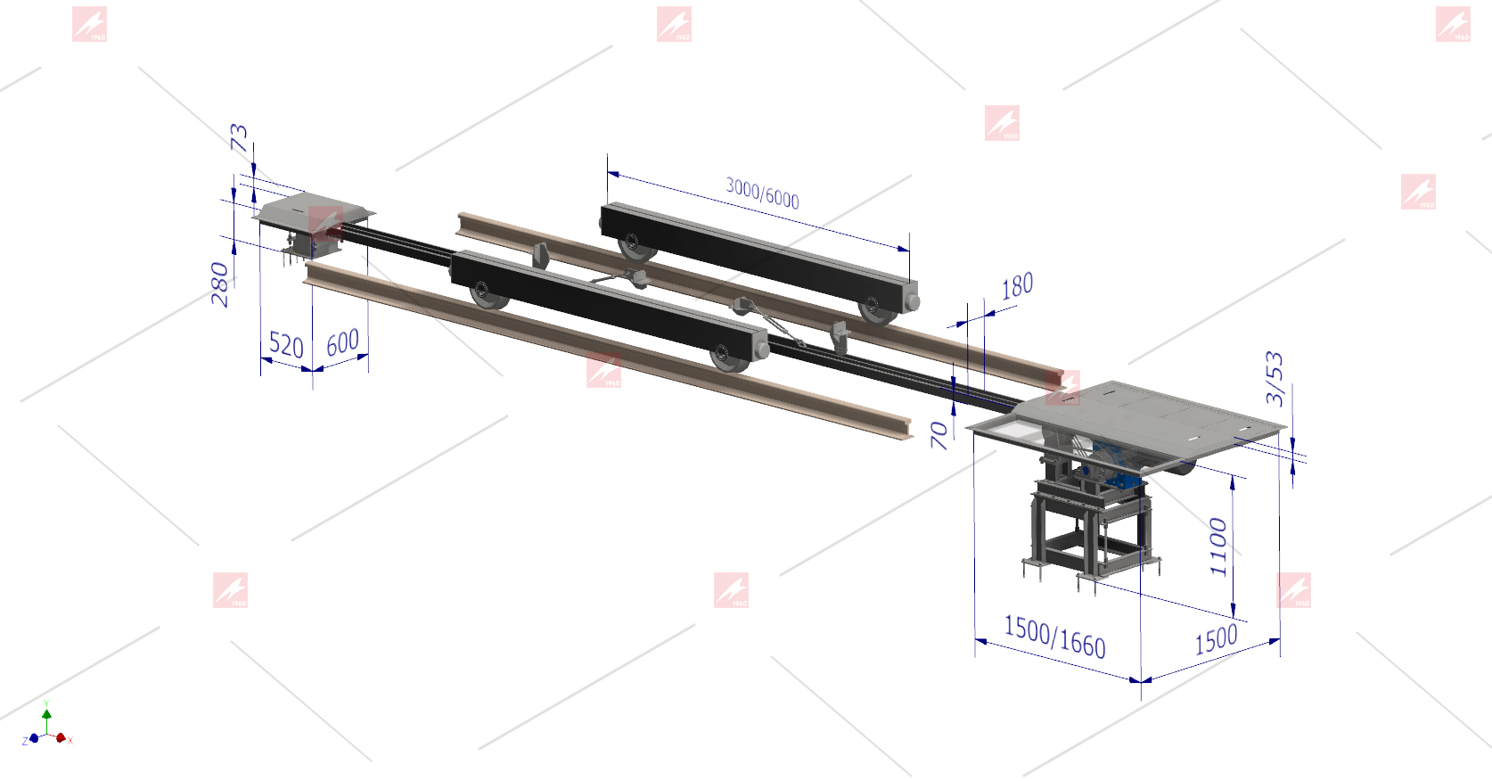 Такая тележка представляет собой самоходную грузовую платформу, которая движется по рельсам. Использование транспортной системы ускоряет процесс подачи заготовок и готовых изделий на сушку и покраску и способствует повышению производительности работ.