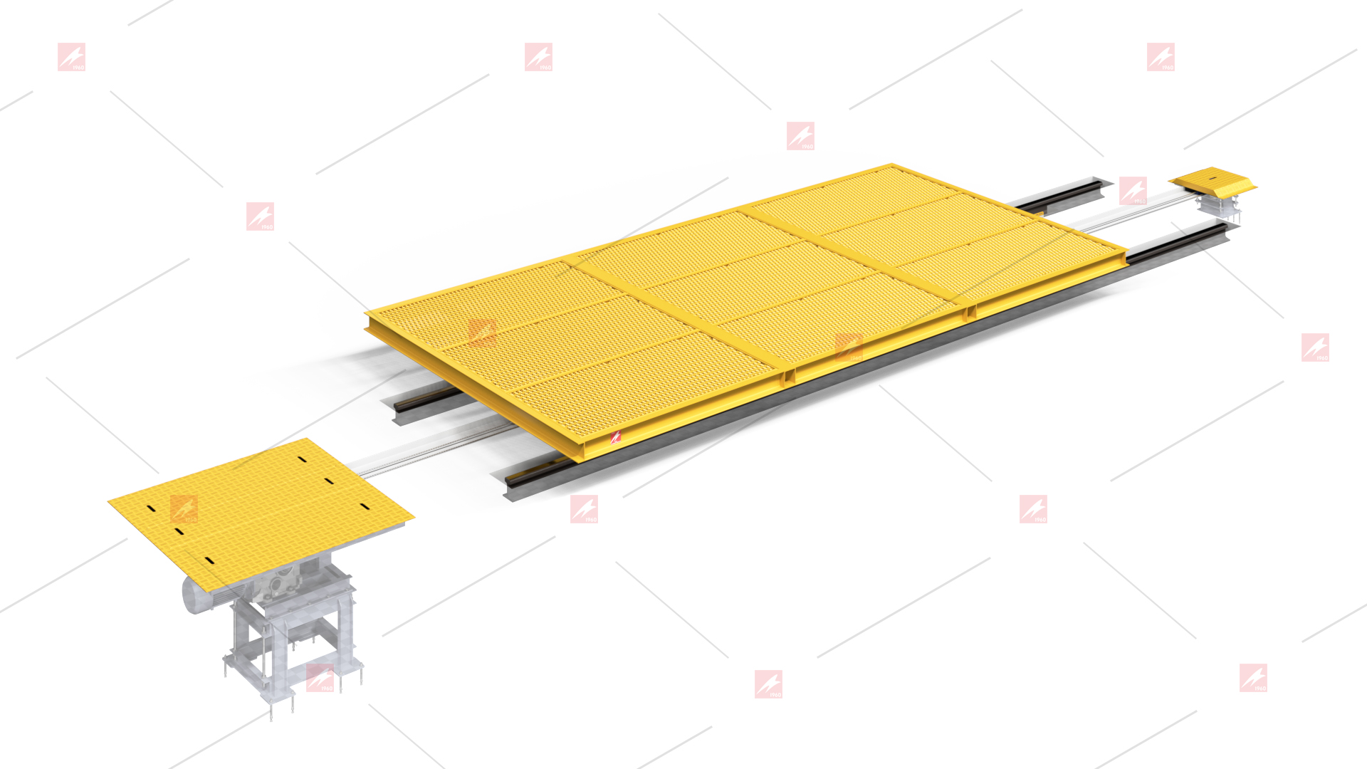 Конструкция платформы позволяет проводить окраску непосредственно на этой же платформе, что существенно ускоряет процесс покраски и повышает производительность всей линии. Транспортная система приводится в движение при помощи лебедки с бесконечным тросом. Такое решение исключает вероятность искрообразования в рабочей зоне и обеспечивает возможность эксплуатации во взрыво- и пожароопасных зонах класса В-Iа в соответствии с «Правилами устройства электроустановок» (ПУЭ).