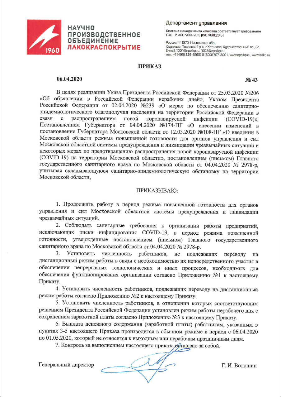 НПО «Лакокраспокрытие» продолжает работать в штатном режиме