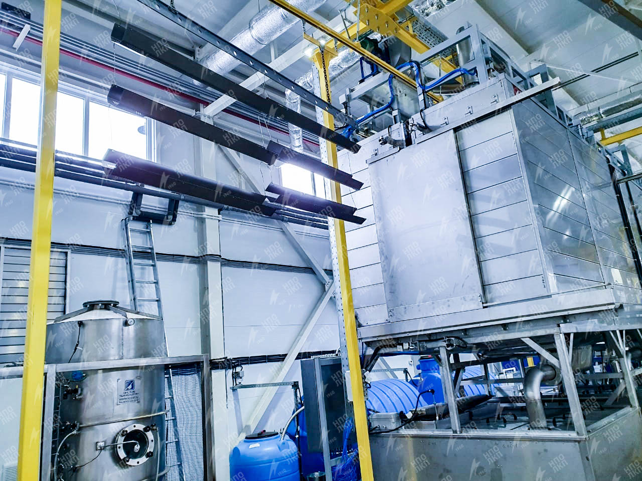 1) Линия подготовки поверхности - состоит из агрегата химической подготовки поверхности, установки вакуумного выпаривания и сушильной камеры.