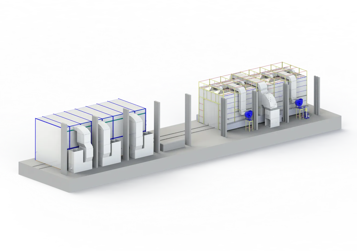 Оборудование предназначено для подготовки поверхности, окрашивания и сушки крупногабаритных сборочных единиц магистрального тепловоза 2ТЭ25.