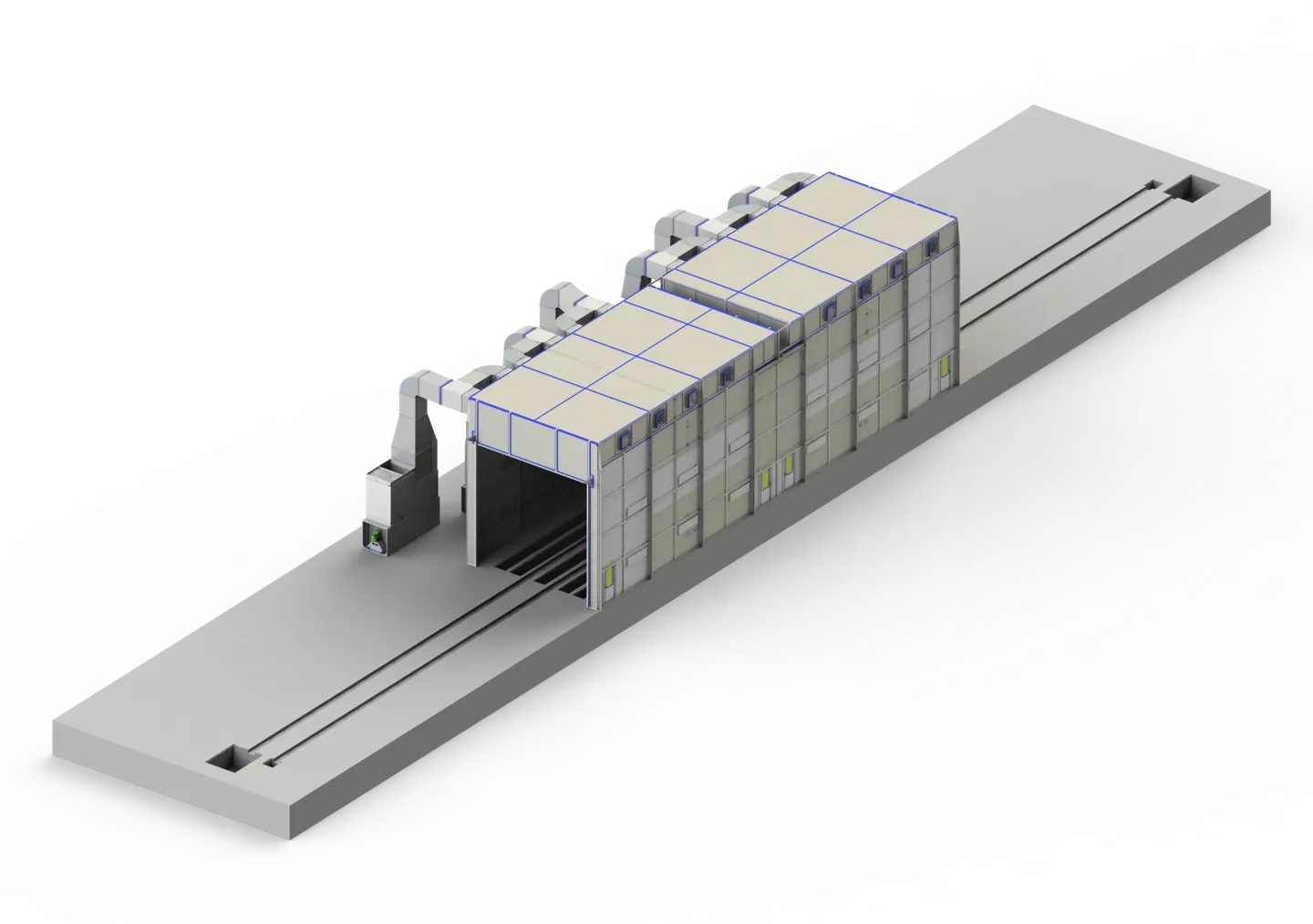 Окрасочный комплекс предназначен для окрашивания и последующей сушки лакокрасочных покрытий на крупногабаритных металлоконструкция и сборочных узлов.