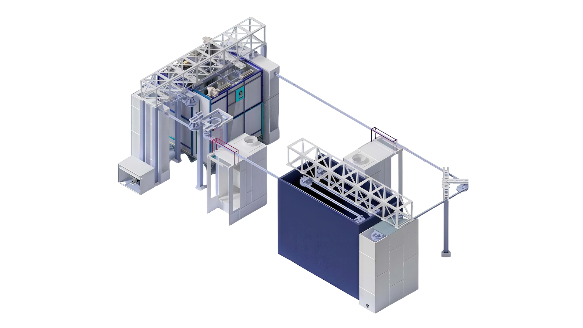 Загрузка и разгрузка деталей на подвесной конвейер осуществляется операторами с помощью пневматических манипуляторов.