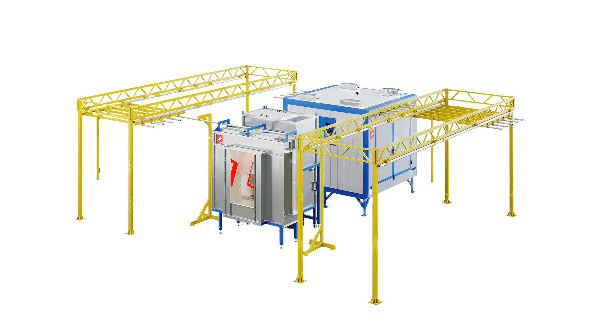 Участок окрашивания кольцевого типа используется для нанесения и полимеризации порошковых покрытий на изделия среднего размера. Данная линия является базовым бюджетным решением для малого бизнеса. Отличается компактностью и может использоваться на ограниченной площади.
